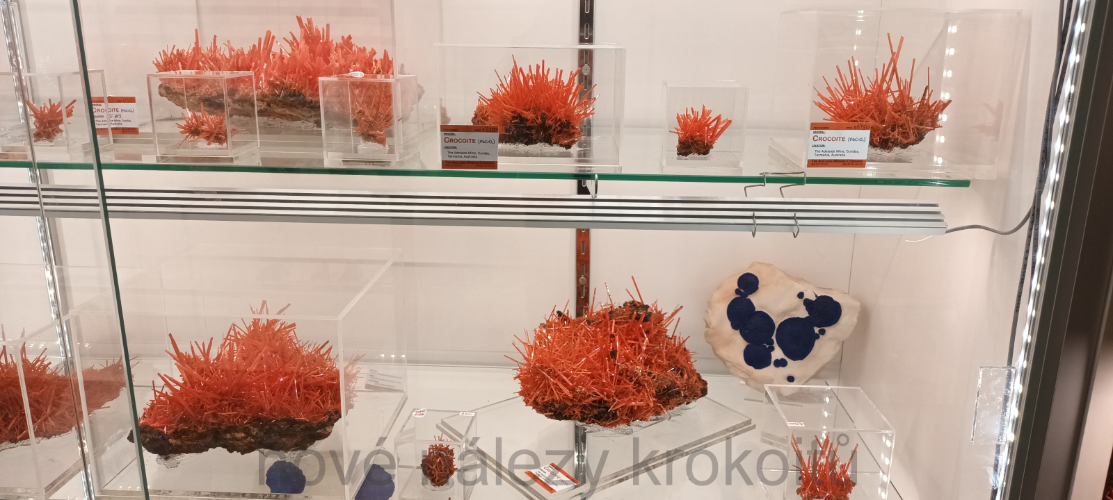 Po pravdě zase musím uznat, že se mi letos podařilo sehnat opravdu velké množství cenově dostupných minerálů na český trh, které se objeví na našem e-shopu nebo burzách. Konkrétně se jedná o standartně nabízené mexické minerály jako např. konichalcity, mottramity, wulfenity, creedity, aurichalcity, fluority, adaminy, hemimorfity, ale zadařily se i vzácné minerály nifontovit a borcarit v opravdu velmi kvalitních ukázkách. Z Brazílie mám rutily s hematitem, ludlamity a několik špičkových brazilianitů. Z Austrálie pak cenově dostupné krokoity včetně několika muzejních vzorků. Z amerických lokalit pak amazonity z Colorada, chalkantity z Arizony, pyritová sluníčka ze Sparty, trony a hality z Kalifornie, galenity z Missoury, baryty z Iowy, bixbyity v kombinaci s topazy z Thomas Range. Podařilo se mi sehnat i několik novinek - cenově dostupných zeolitů z lokality Custer Co., v Idahu. Z Afriky mám kaktusové ametysty a citríny, pegmatitové vzorky z Malawi, shattuckity z Namíbie.