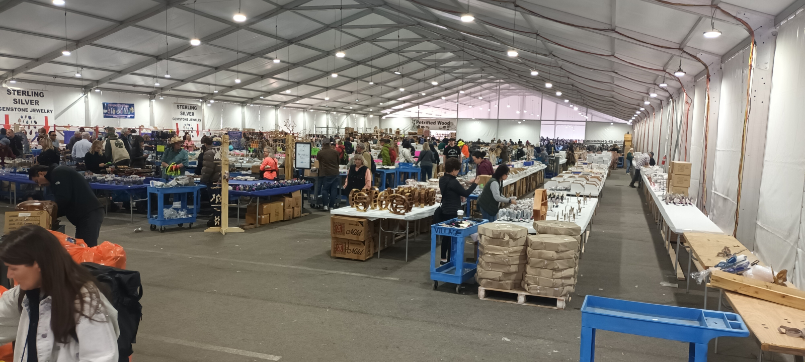 Výstava v Tucsonu je určitě největší akcí tohoto druhu na světě a je velmi těžké tento gigantický podnik výstižně pojmenovat, budu používat prostý výraz výstava ( zasloužil by si spíše slova megashow nebo megaakce, domorodci používají prosté Gem Shows ) . V roce 1954 založilo několik nadšenců spolek, který ze začátku v základní škole pořádal první mineralogickou výstavu a následující rok již byla výstava minerálů přičleněna k veletrhu Pima County fair a Rodeo Grounds. Z jednoho výstavního místa se rozšířila na současných neuvěřitelných 80 výstavních míst a paralelně probíhá téměř v celém městě. V urbanisticky skvěle řešeném Convention Centre ( zde je nejkvalitnější a nejprominentnější část výstavy, od roku 1972 se zde pořádá na 16 800m2 ), v podobném Congress Expo, ale i ve většině hotelových hal a pokojů i motelových pokojíků se čile obchoduje. Stejně fungují i prostory velkoskladů a podobných zařízení kolem hlavních tepen v Tucsonu, stovky obrovských stanů, vše je plné minerálů, kamenů a fosilií. Aby jste stihli všechno prohlédnou a případně nakoupit, můžete použít pravidelné dopravy tzv. „ shuttles“, která jezdí v pravidelných intervalech a jednotlivé trasy mají svá barevná označení nebo si pronajmout auto a být tak zcela nezávislý. Veškeré dění okolo výstavy je organizačně fantasticky zvládnuto. Každý z návštěvníků, kteří mimochodem nikde neplatí žádné vstupné, se nejprve zaregistruje a obdrží identifikační kartičku s názvem buyer“, kde je pak na všech prodejních místech velmi vítaný.