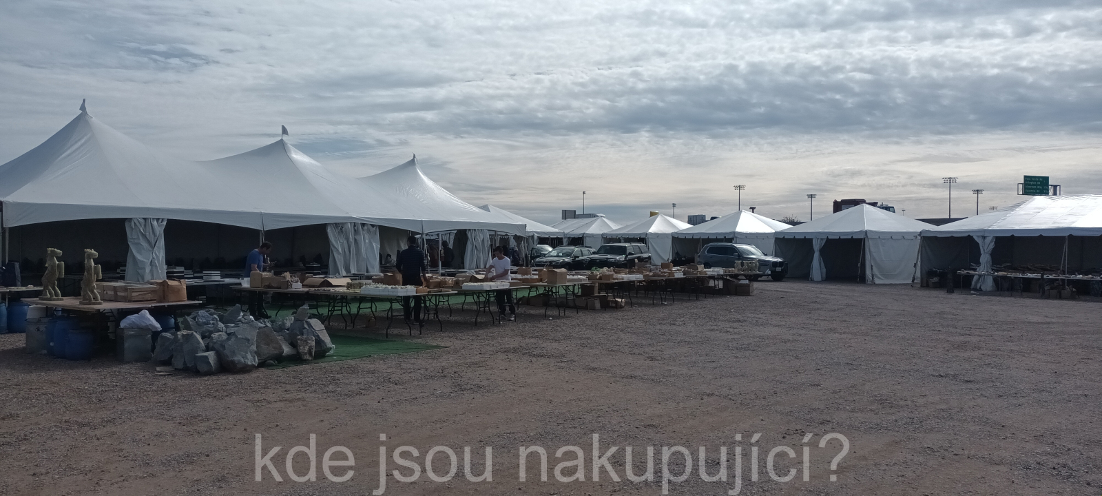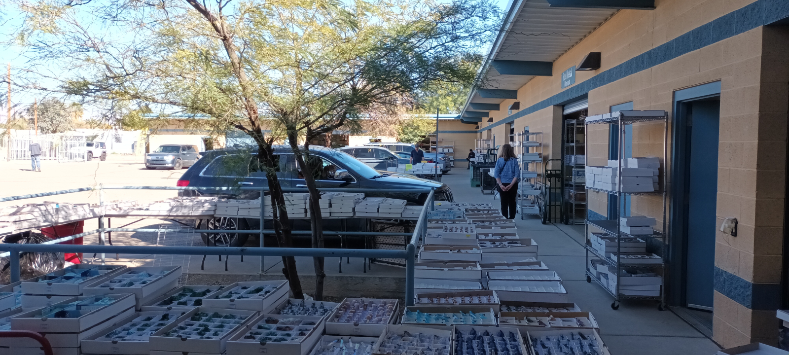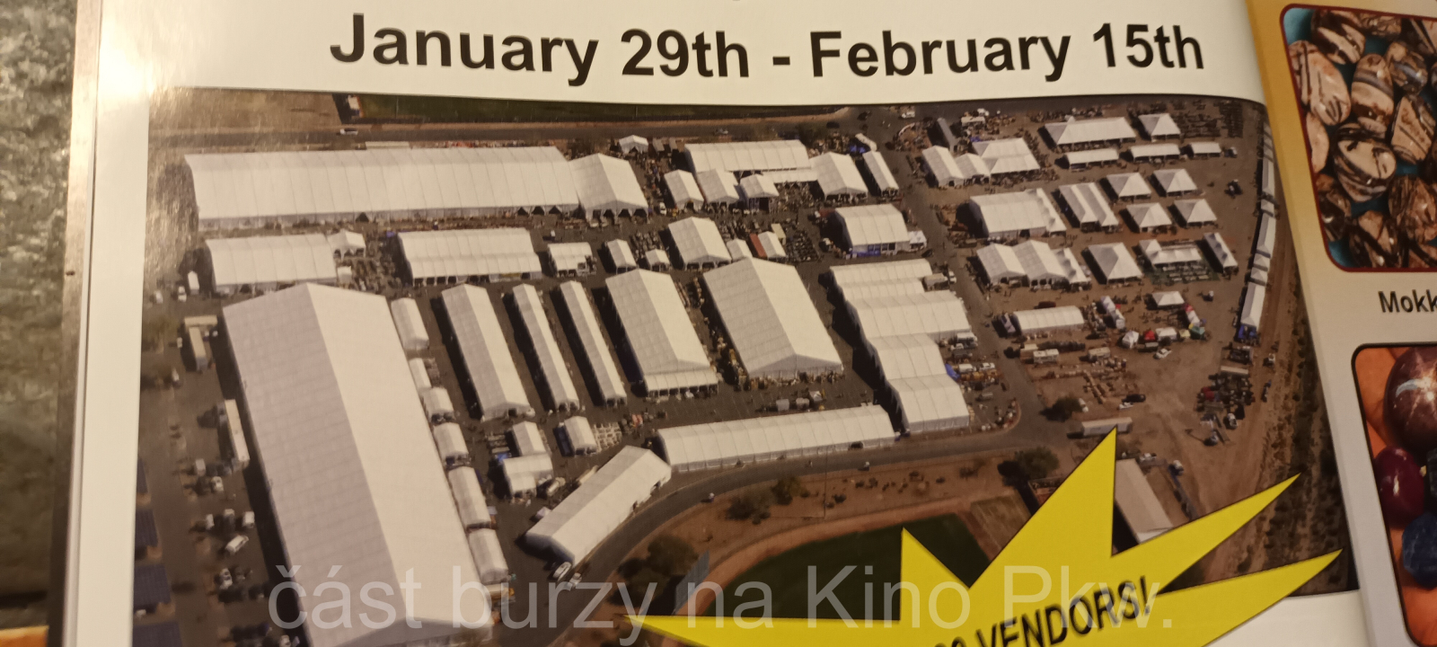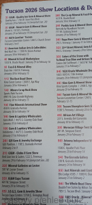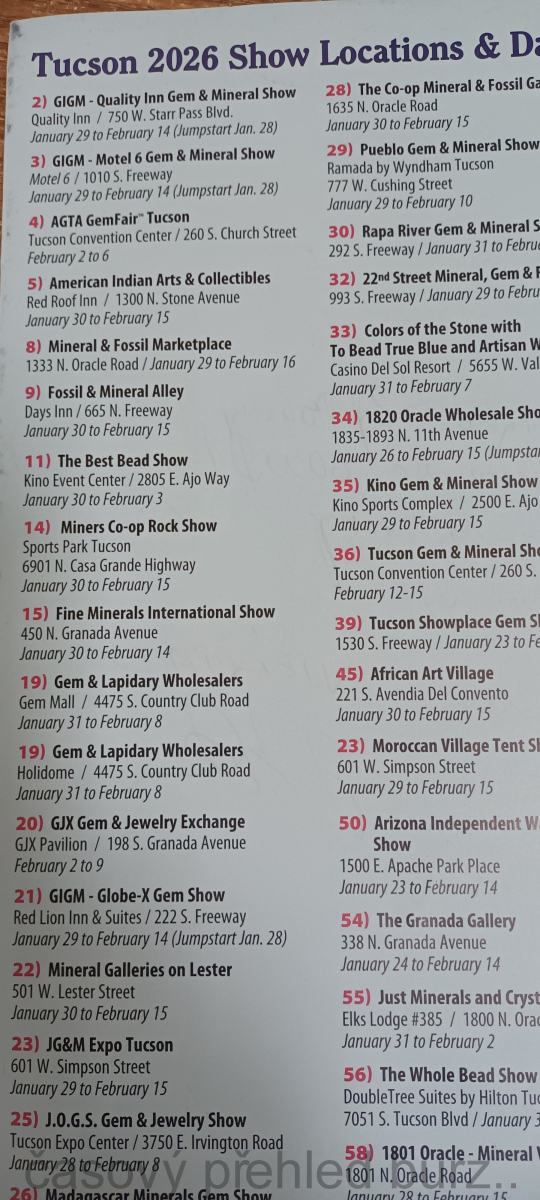 Díky včasnému příletu do Tucsonu jsme se vyhnuli potížím, které způsobilo počasí na většině území USA, kde přívaly sněhu a náledí na několik dní uvěznily letadla a i veškerý pozemní provoz. Plno prodejců se tak dostavilo o několik dní později a někteří čekali více jak týden na svoje kameny….