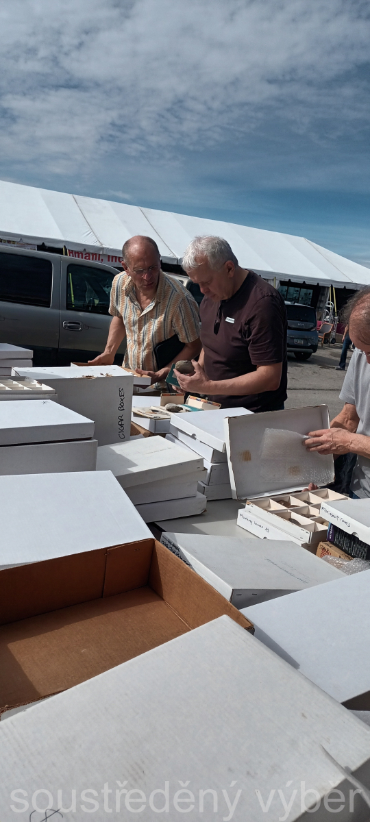 Co mi letos překvapilo, tak byla velmi pestrá a hojná nabídka minerálů z Afriky. Egiriny, mikrokliny, záhnědy z Malawi, fluority a křemeny z Nigérie, shattuckit, dioptas, malachit a živce s turmalíny z Namíbie v neskutečném množství a různých kvalitách. Další překvapení bylo obrovské množství minerálů z Turecka, kde prodejci prodávaly kartony achátů, epidotů, pyritů a co mi úplně „dostalo“ tak i krabice vzácného kämmereritu, který je poměrně málo k vidění. Po několika letech měli i dealeři z Mexika slušný výběr klasických minerálů z lokality Mina Ojuela (v předchozích pěti letech skoro nic na trhu nebylo nebo za neskutečné částky), Naica i Sierra de la Cruces.
