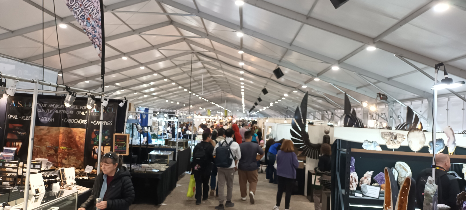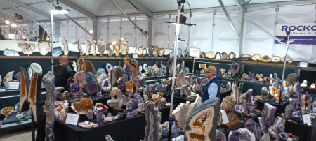Díky včasnému příletu se mi podařilo navštívit nové prodejní prostory internetové hvězdy pořadu Mineral Explorers Thomase Nagina , kde se nabízel kolumbijský křišťál a bolívijské ametysty. Musím přiznat, že to bude asi to nejpěknější co se mi podařilo sehnat.