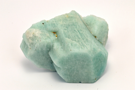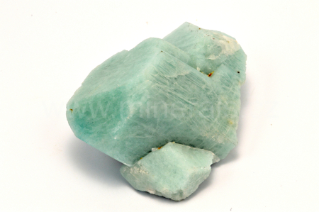 Amazonit (modrozelená odrůda draselného živce mikroklinu) vytváří sytě modrozelené, skelně lesklé, částečně průsvitné, pěkně ohraničené krystaly dosahující velikosti až 37 mm, které se vzájemně prorůstají. Podotýkám, že díky různým typům monitorů a osvětlení se může odstín amazonitu lišit.