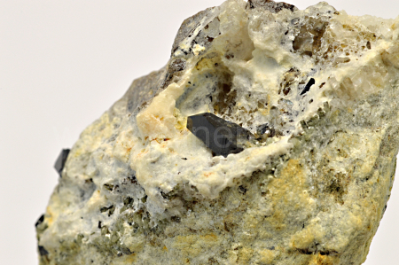 Anatas vytváří temně hnědé, pohledově šedočerné, polokovově až skelně lesklé, částečně průsvitné, podélně rýhované, pěkně ukončené, protažené krystaly dosahující velikosti až 7 mm, které narůstají na světlou podložku spolu s drobnými, mléčně bílými krystaly albitu.