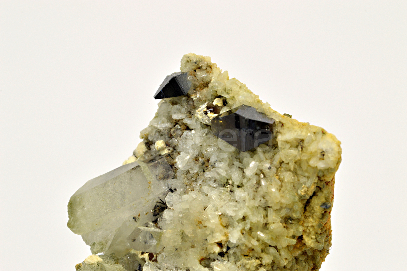 Anatas vytváří temně hnědé, pohledově šedočerné, polokovově až skelně lesklé, částečně průsvitné, podélně rýhované, oboustranně ukončené krystaly dosahující velikosti až ý mm, které narůstají na světlou podložku spolu s drobnými, mléčně bílými krystaly albitu a průhlednými křemeny.