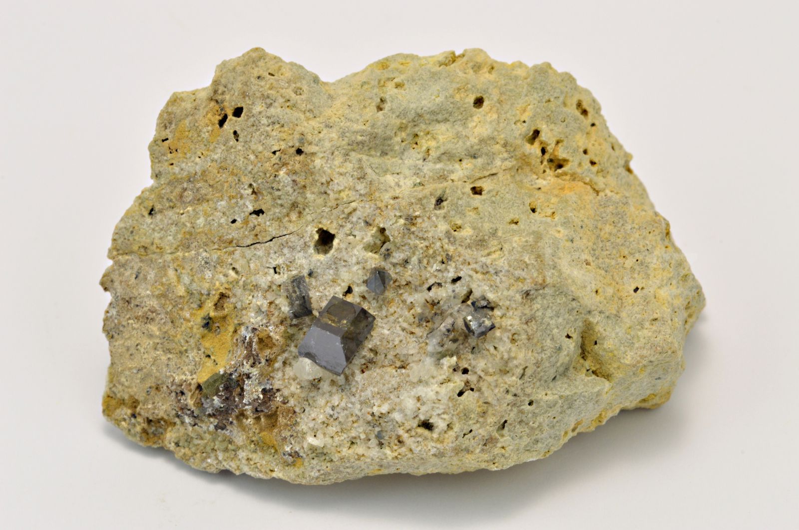 Anatas vytváří temně hnědé, pohledově šedočerné, polokovově až skelně lesklé, částečně průsvitné, podélně rýhované, pěkně ukončené, protažené krystaly dosahující velikosti až 6 mm, které narůstají na světlou podložku spolu s drobnými, mléčně bílými krystaly albitu.
