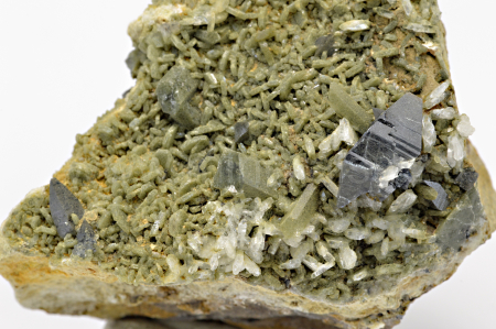 Anatas vytváří temně hnědý, pohledově šedočerný, polokovově až skelně lesklý, částečně průsvitný, podélně rýhovaný, oboustranně ukončený krystal dosahující velikosti cca 11 mm, který narůstá na světlou podložku spolu s drobnými, mléčně bílými krystaly albitu.