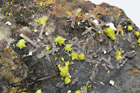 Carlhinzeit vytváří bezbarvé, žluté a čížkově žlutozelené, průsvitné, skelně až hedvábně lesklé, jehličkovité krystaly dosahující délky až 2 mm, které srůstají do polokulovitých, kulovitých a radiálně paprsčitých útvarů a narůstají na křemennou podložku. Carlhintzeit doprovází bezbarvé a lehce nafilalovělé, skelně lesklé, průsvitné krystaly creeditu. Nový minerál z Číny.