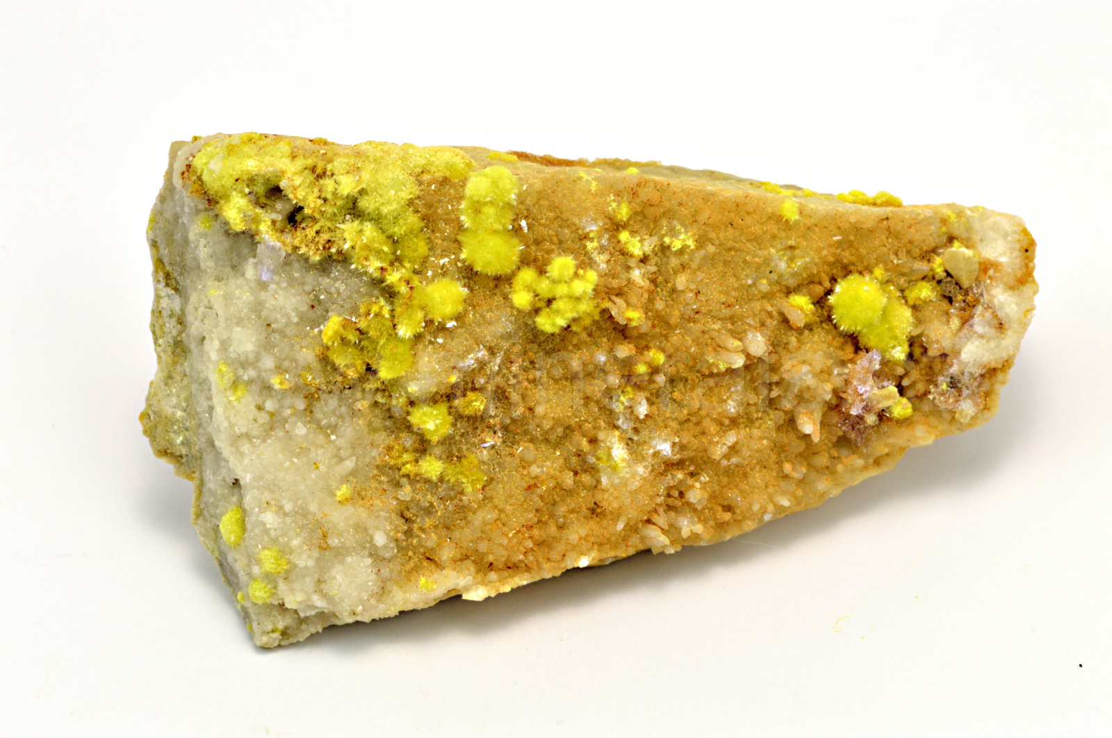 Carlhinzeit vytváří bezbarvé, žluté a čížkově žlutozelené, průsvitné, skelně až hedvábně lesklé, jehličkovité krystaly dosahující délky až 2 mm, které srůstají do polokulovitých, kulovitých a radiálně paprsčitých útvarů a narůstají na křemennou podložku. Carlhintzeit doprovází bezbarvé a lehce nafilalovělé, skelně lesklé, průsvitné krystaly creeditu. Oboustranný vzorek. Nový minerál z Číny.