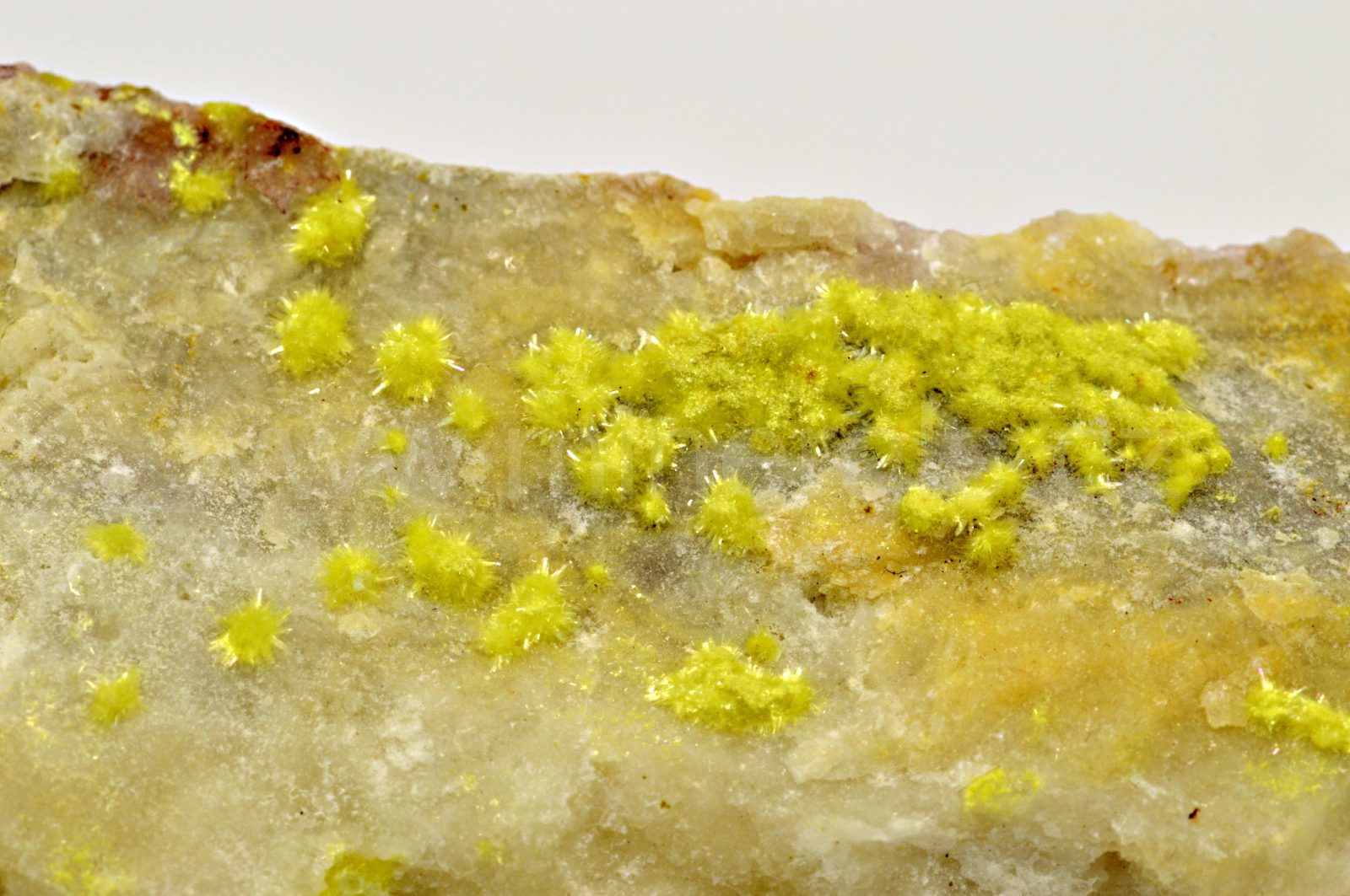 Carlhinzeit vytváří bezbarvé, žluté a čížkově žlutozelené, průsvitné, skelně až hedvábně lesklé, jehličkovité krystaly dosahující délky až 1 mm, které srůstají do polokulovitých, kulovitých a radiálně paprsčitých útvarů a narůstají na křemennou podložku. Oboustranný velmi kvalitní vzorek. Nový minerál z Číny.