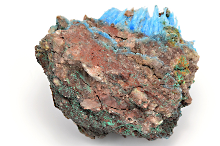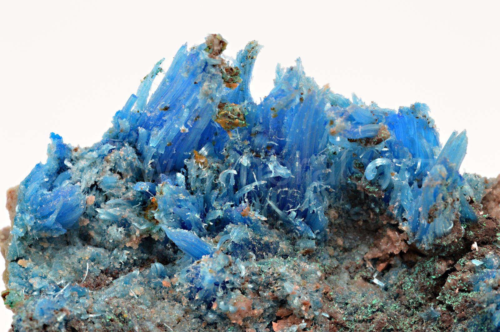 Chalkantit vytváří sytě modré, hedvábně lesklé, průsvitné, vláknité až loknovité agregáty, které dosahují délky až 13 mm a navzájem se prorůstají. POZOR! Minerál je rozpustný ve vodě. Minerál je stabilní, avšak doporučuji instalovat na místo, kde není přímé sluneční světlo.