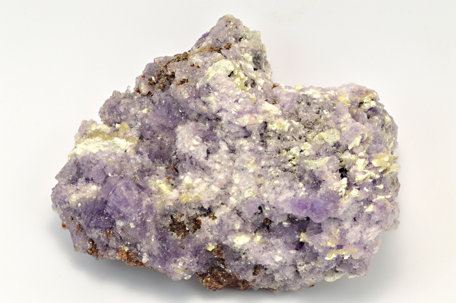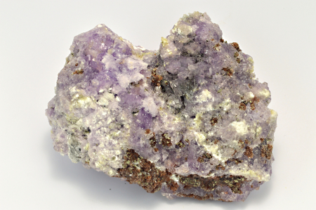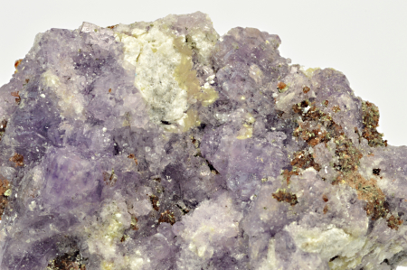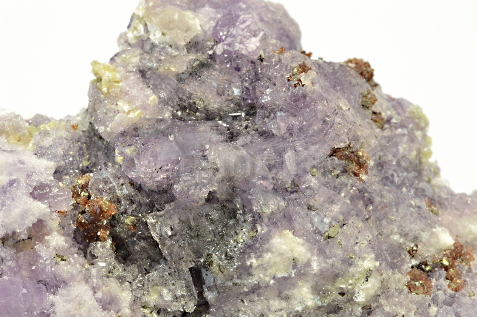 Coquimbit vytváří světle fialové, skelně lesklé, průsvitné, soudečkovité, hexagonální, občas oboustranně ukončené krystaly dosahující velikosti až 11 mm, které se navzájem prorůstají. Mezi krystaly coquimbitu zarůstají mléčně bílé, skelně lesklé, protažené krystaly alunogenu a hnědé, skelně lesklé krystaly römeritu. POZOR ! Minerál je rozpustný ve vodě. Doporučuji minerál umístit mimo místa, kde je větší teplota a není přímé sluneční záření. Minerál je sice stabilní, ale díky nevhodnému umístění může změnit barvu krystalů na oranžovohnědou. Díky tomu, že v boxu mám bílé světlo, tak ve skutečnosti coquimbit na normálním osvětlením má krásnou světle "ametystovou" barvu - viz poslední orientační fotografie. Nejkvalitnější vzorek co mám na prodej.