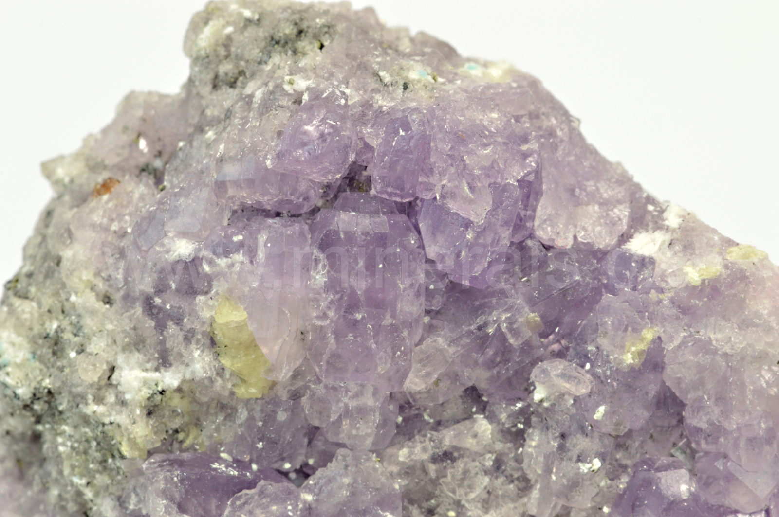 Coquimbit vytváří světle fialové, skelně lesklé, průsvitné, soudečkovité, hexagonální, občas oboustranně ukončené krystaly dosahující velikosti až 7 mm, které se navzájem prorůstají. Na krystaly coquimbitu narůstají drobné, temně hnědé, lesklé krystaly römeritu. POZOR ! Minerál je rozpustný ve vodě. Doporučuji minerál umístit mimo místa, kde je větší teplota a není přímé sluneční záření. Minerál je sice stabilní, ale díky nevhodnému umístění může změnit barvu krystalů na oranžovohnědou. Díky tomu, že v boxu mám bílé světlo, tak ve skutečnosti coquimbit na normálním osvětlením má krásnou světle "ametystovou" barvu - viz poslední orientační fotografie.