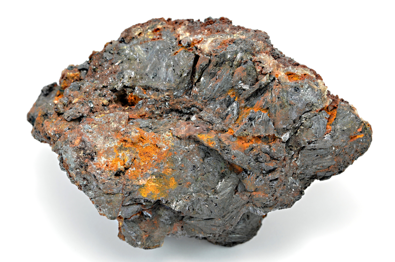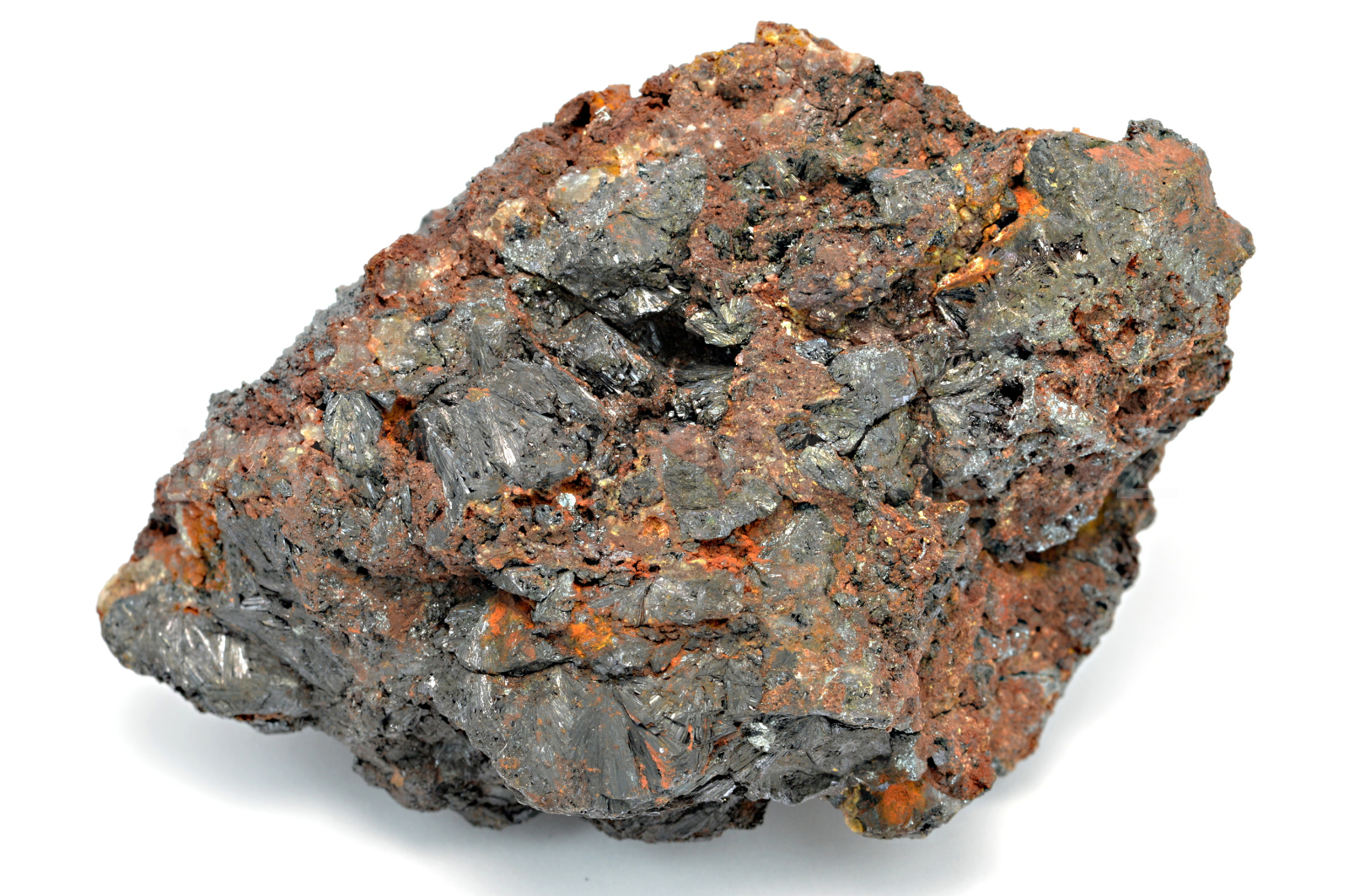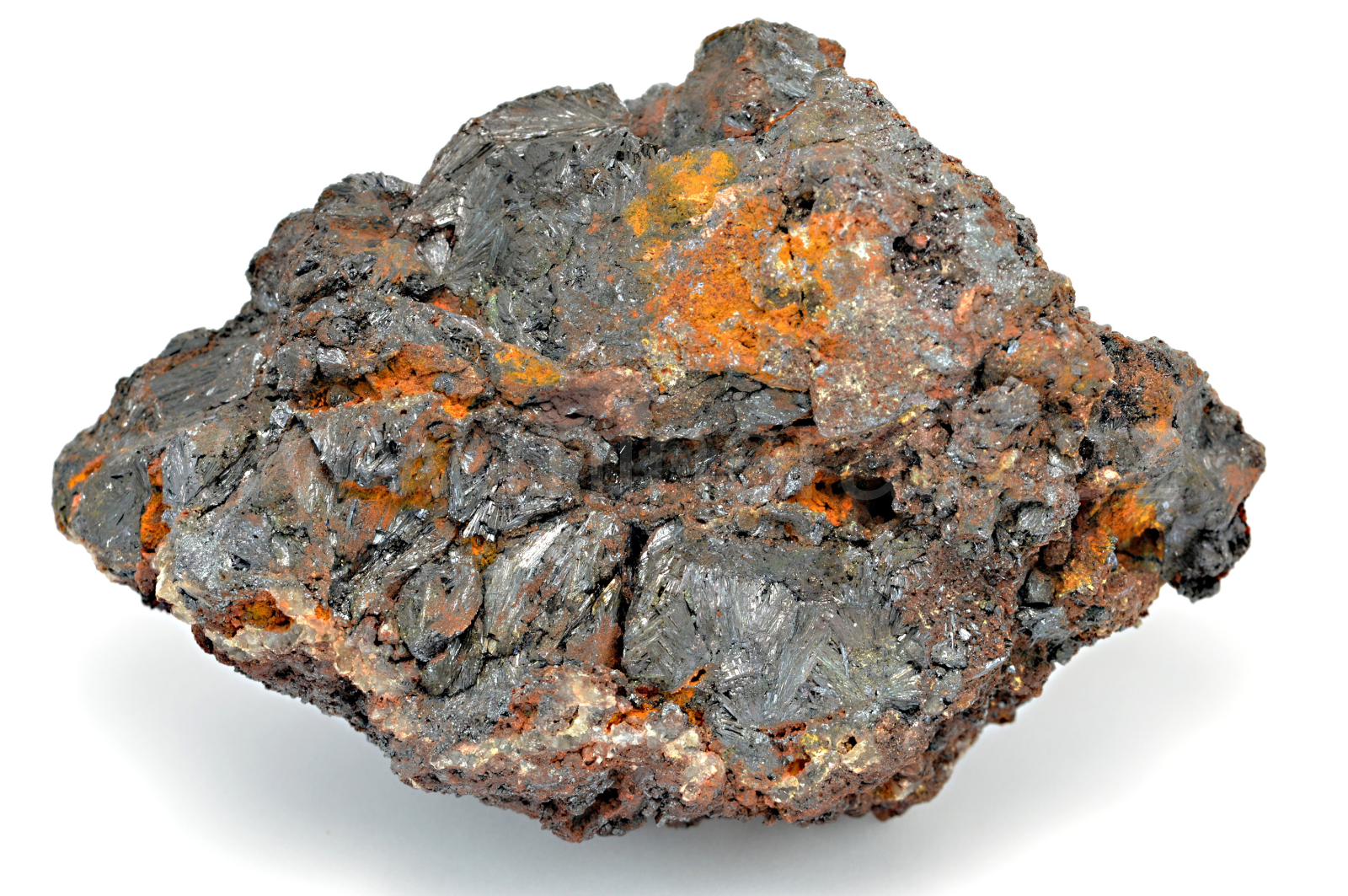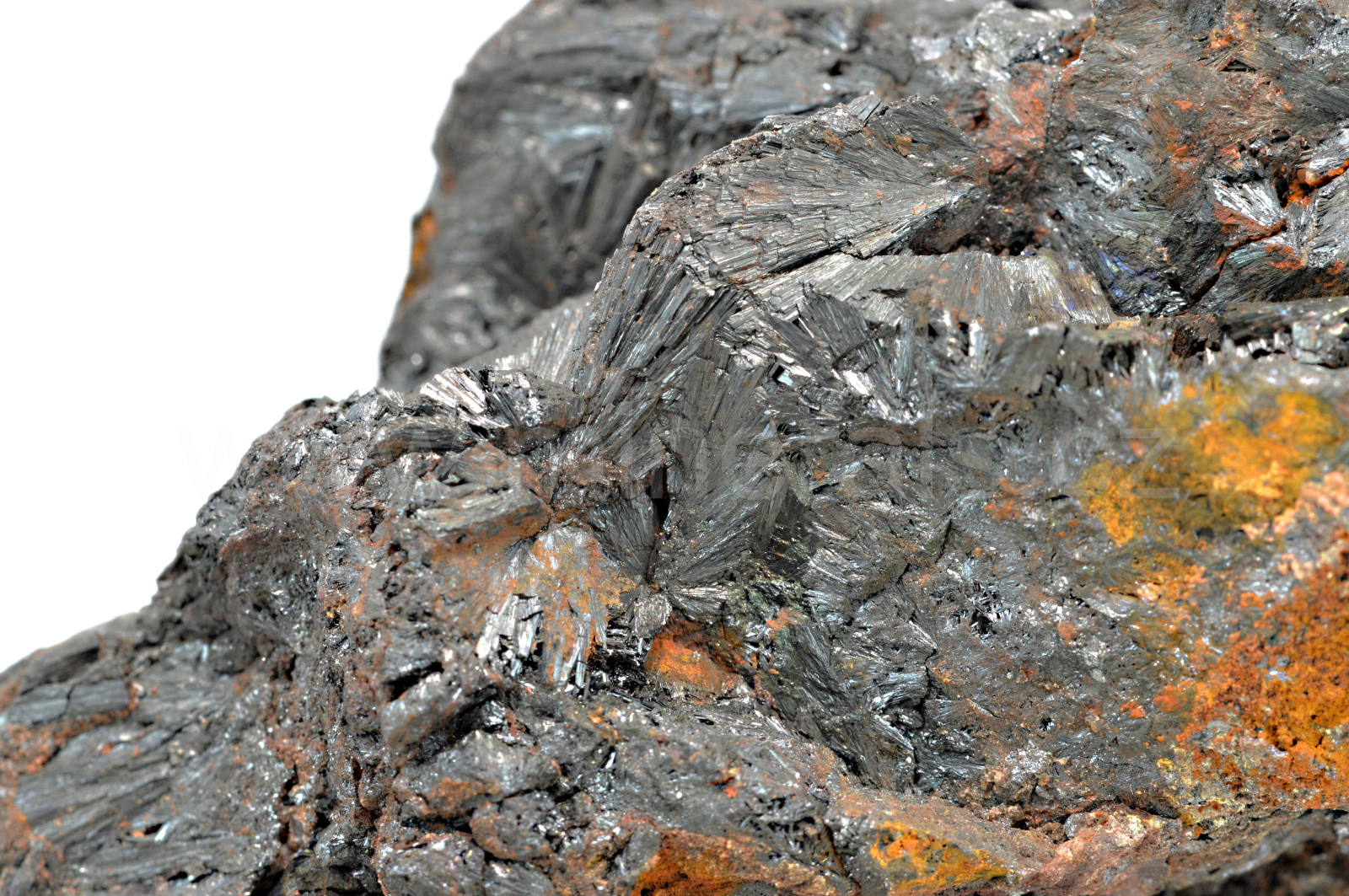 Goethit vytváří tmavě hnědé s fialovým nádechem, kovově lesklé, neprůsvitné, jehlicovité, protažené krystaly dosahující velikosti délky 10 mm, které se navzájem prorůstají, vytvářejí radiálně paprsčité agregáty a prorůstají celým vzorkem.