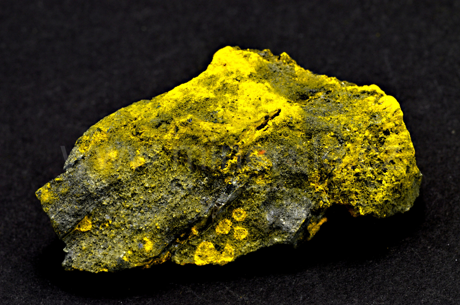 Greenockit vytváří sírově sytě žluté, matně lesklé, částečně průsvitné, zemité agregáty a povlaky tvořené z mikroskopických krystalů. Novinka z této lokality!