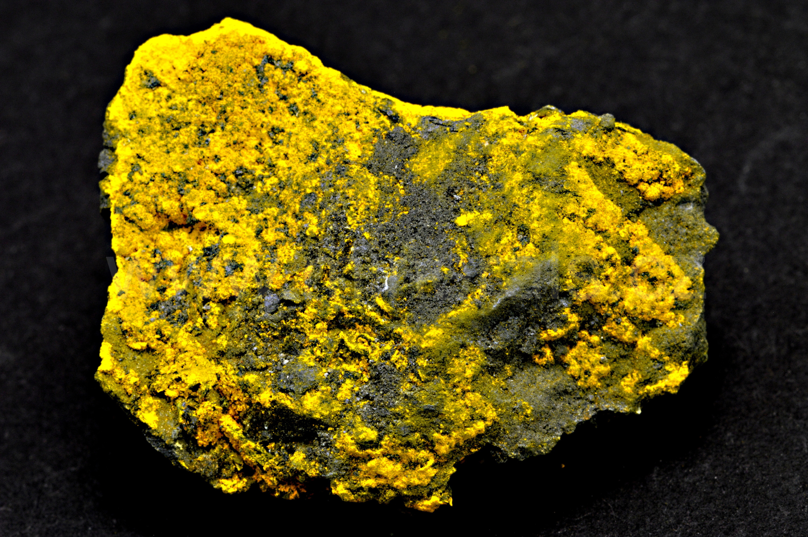 Greenockit vytváří sírově sytě žluté, matně lesklé, částečně průsvitné, zemité agregáty a povlaky tvořené z mikroskopických krystalů. Novinka z této lokality!