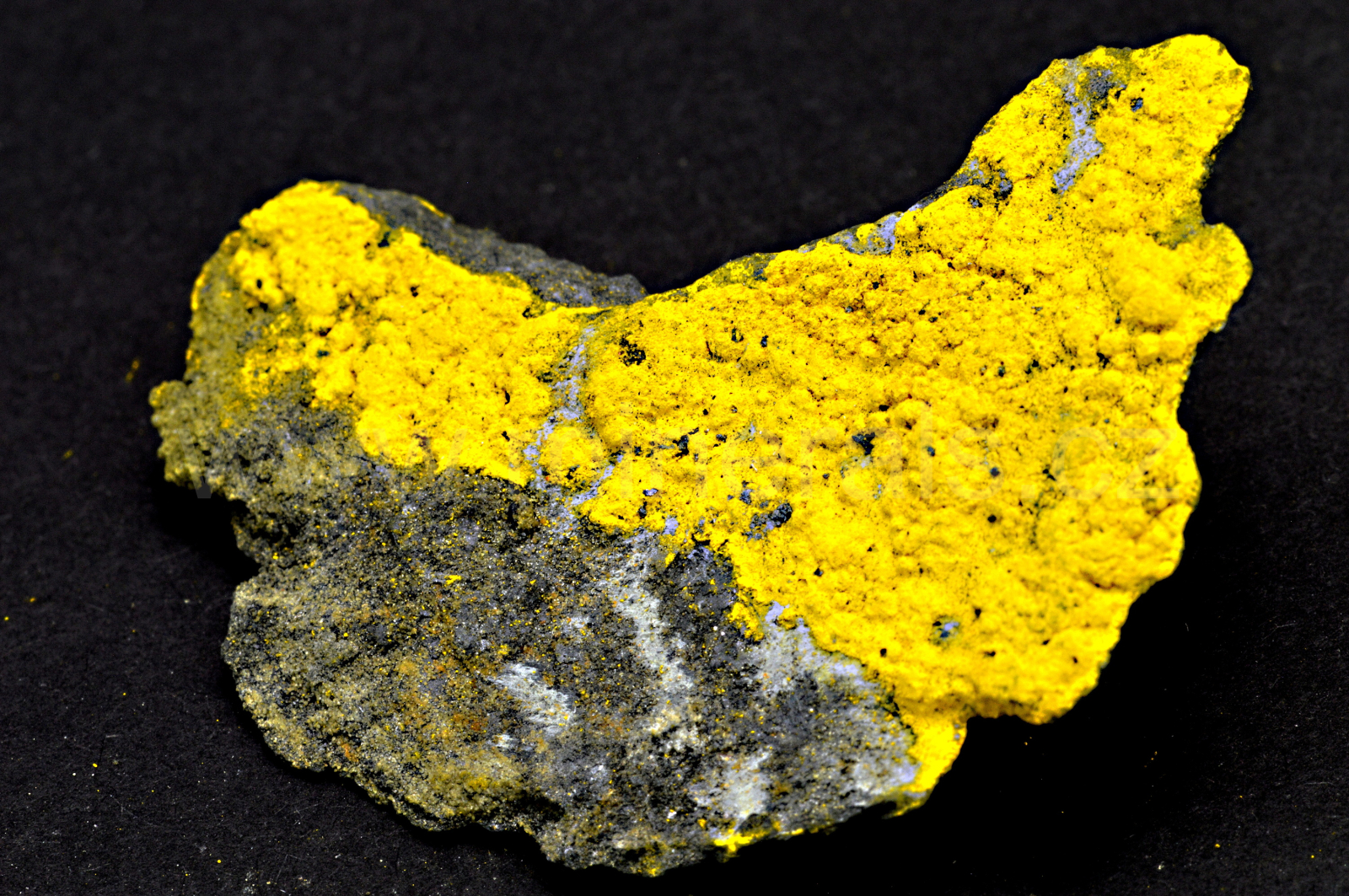 Greenockit vytváří sírově sytě žluté, matně lesklé, částečně průsvitné, zemité agregáty a povlaky tvořené z mikroskopických krystalů. Novinka z této lokality!