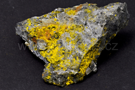 Greenockit vytváří sírově sytě žluté, matně lesklé, částečně průsvitné, zemité agregáty a povlaky tvořené z mikroskopických krystalů, které doprovází bezbarvé s nahnědlým odstínem, skelně lesklé, průhledné krystaly cerusitu. Velice pěkná kombinace. Novinka z této lokality!