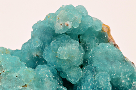 Hemimorfit vytváří světle modré, skelně lesklé, průsvitné, drobné krystaly které se navzájem prorůstají a tvoří kůry, polokulovité a ledvinité agregáty. Velmi estetický vzorek s vysokým leskem.