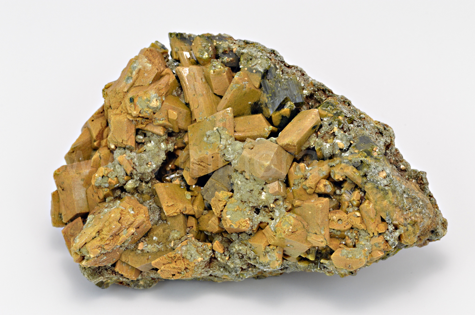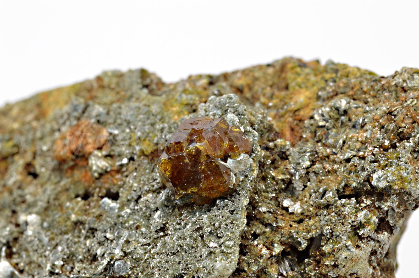 Hesonit vytváří oranžovohnědé, skelně lesklé, průsvitné, pěkně ohraničené krystaly dosahující velikosti až 9 mm, které zarůstají do tabulkovitých, mastně lesklých krystalů klinochloru. Hesonit doprovází temně zelené, skelně lesklé krystaly epidotu a zejména celá spodní strana vzorku je porostlá tabulkovitými krystaly epidotu, které jsou na povrchu částečně přeměněné. Vzorky nepochází přímo z místa Kipushi, ale francouští geologové, od kterých tyto vzorky mám, je lokalizovali jako nejbližší známé místo. Lokalitu náhodně objevili při průzkumu a není ani zanesena v databázi lokalit na Mindatu.