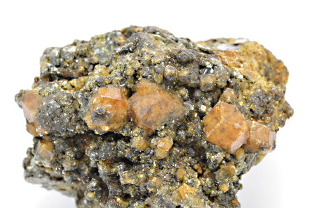 Hesonit vytváří oranžovohnědé, skelně lesklé, průsvitné, pěkně ohraničené krystaly dosahující velikosti až 11 mm, které zarůstají do tabulkovitých, mastně lesklých krystalů klinochloru. Hesonit doprovází temně zelené, skelně lesklé krystaly epidotu. Vzorky nepochází přímo z místa Kipushi, ale francouští geologové, od kterých tyto vzorky mám, je lokalizovali jako nejbližší známé místo. Lokalitu náhodně objevili při průzkumu a není ani zanesena v databázi lokalit na Mindatu.