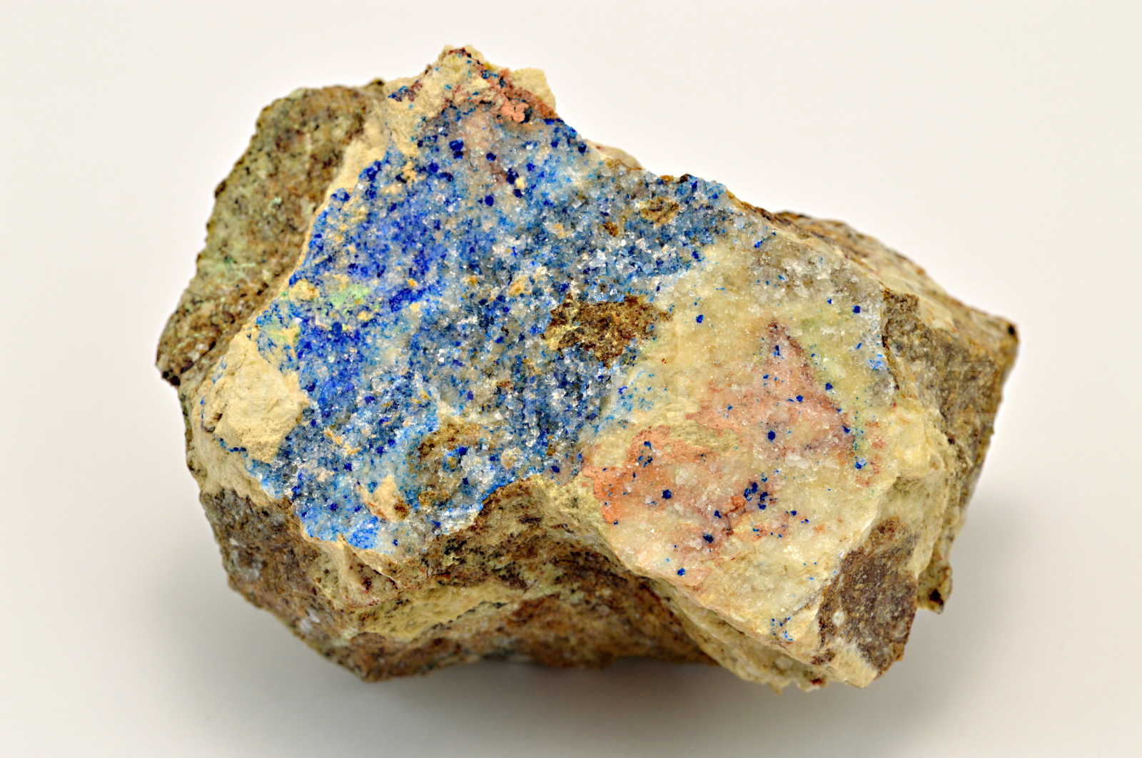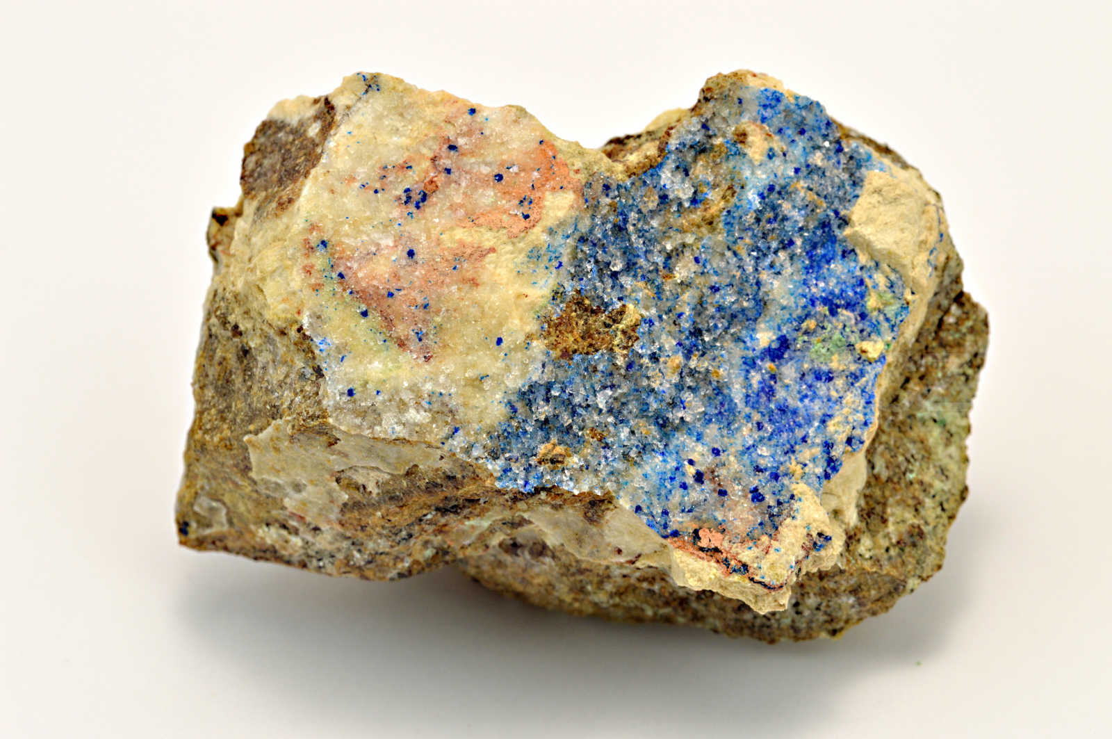 Kinoit vytváří sytě modré, skelně lesklé, částečně průsvitné, drobné krystaly dosahující maximální velikosti cca 1 mm, které z větší části zarůstají do průsvitných až průhledných krystalů fluorapofylitu. Pěkný malý vzorek.