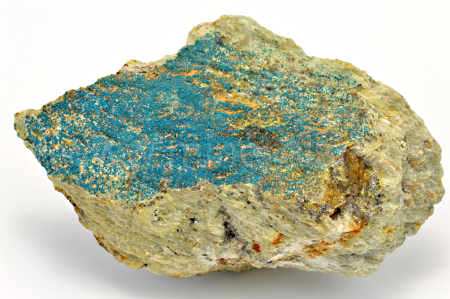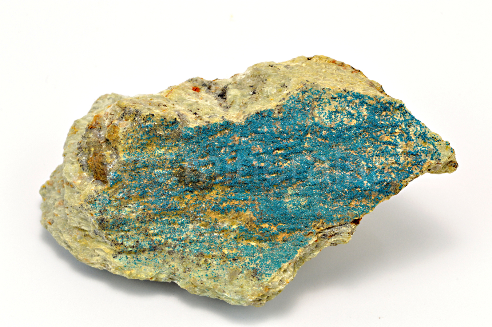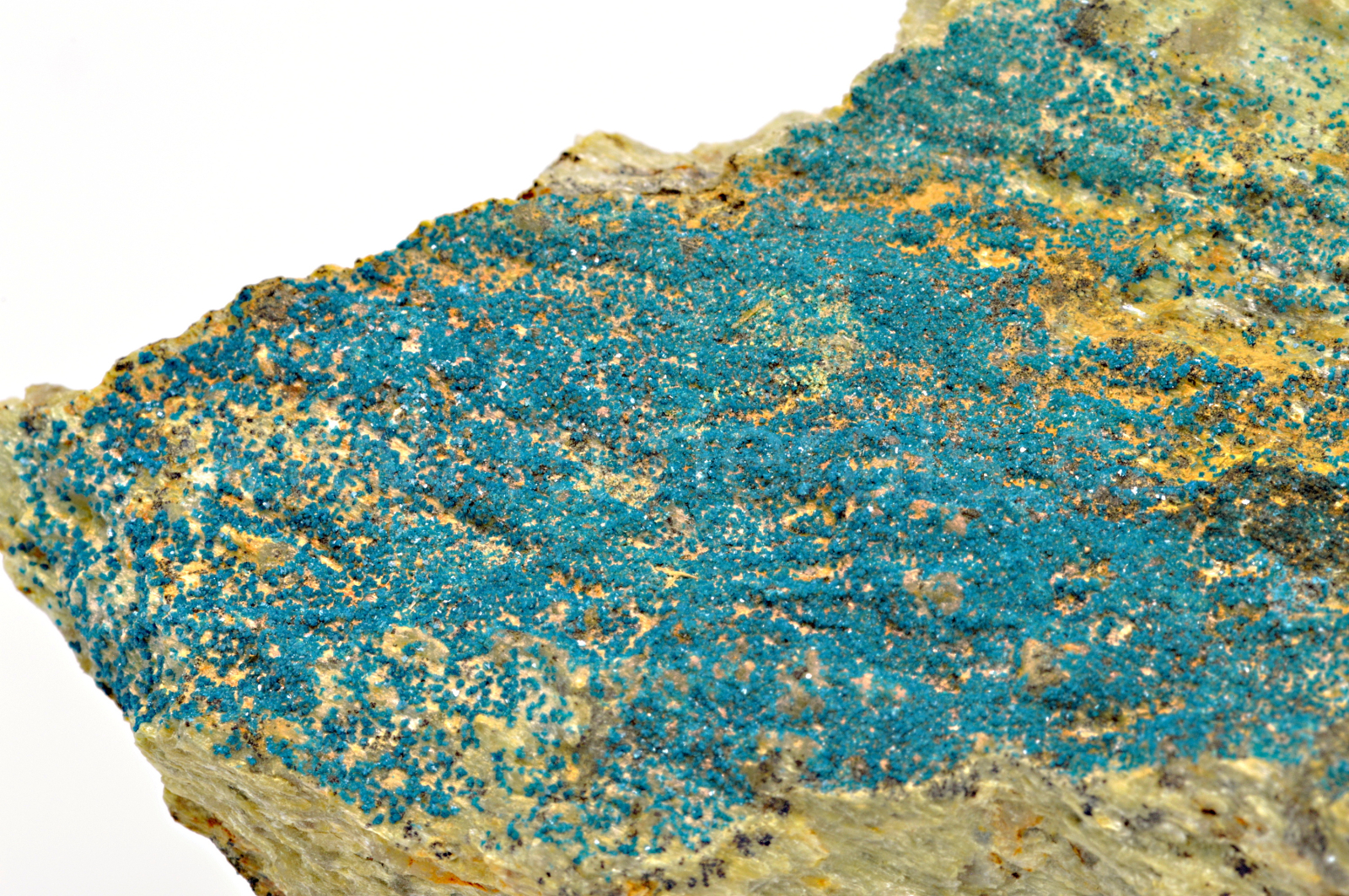 Langit vytváří sytě modré, skelně lesklé, průsvitné, kubické a pseudokubické krystaly dosahujíc velikosti až 1 mm, které se navzájem prorůstají. Malý, ale velmi bohatý vzorek.