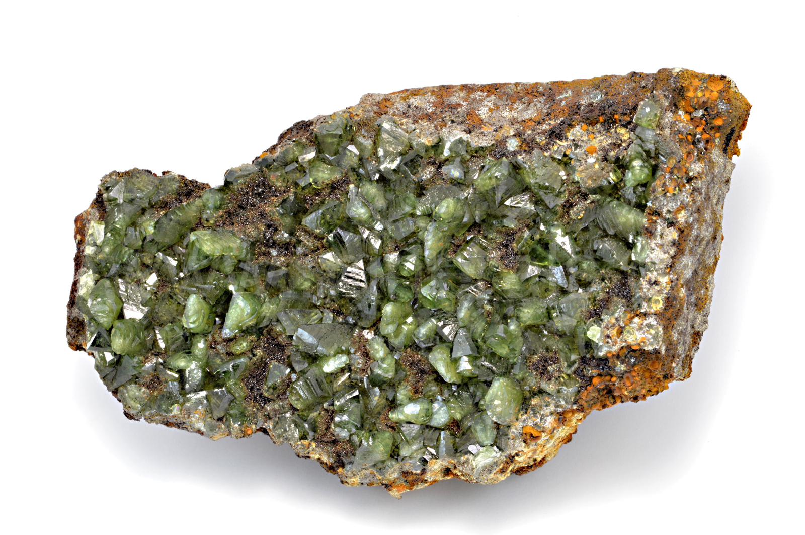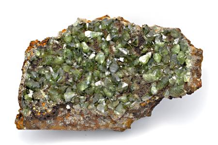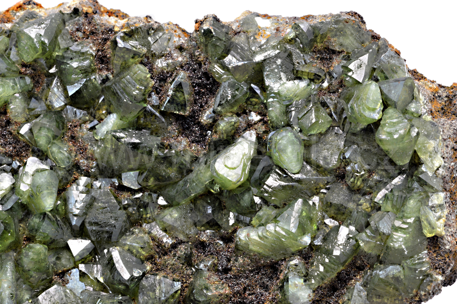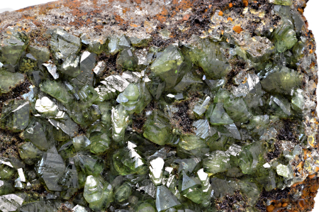 Ludlamit vytváří světle až tmavě zelené, průsvitné, skelně lesklé, pyramidální krystaly dosahující velikosti až 10 mm, které se navzájem prorůstají. Velmi kvalitní vzorek.