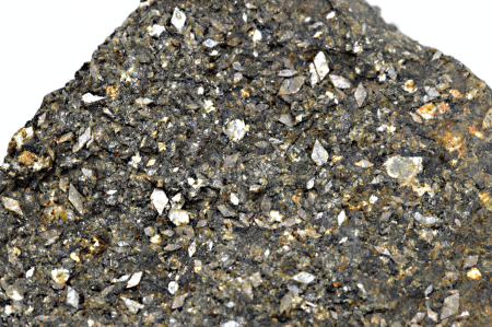 Naujakasit vytváří krémové, bělavé, šedavé, stříbřitě hedvábně lesklé, částečně průsvitné, lupenité krystaly dosahující velikosti až 3 mm, které prorůstají celým vzorkem a zarůstají do temně zelenočerného egirinu a arfvedsonitu. Oboustranný vzorek. Velmi vzácný minerál z typové a velmi těžko dostupné lokality.