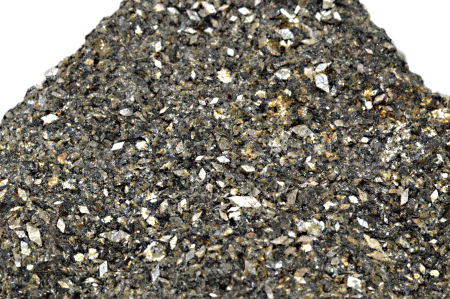 Naujakasit vytváří krémové, bělavé, šedavé, stříbřitě hedvábně lesklé, částečně průsvitné, lupenité krystaly dosahující velikosti až 3 mm, které prorůstají celým vzorkem a zarůstají do temně zelenočerného egirinu a arfvedsonitu. Oboustranný vzorek. Velmi vzácný minerál z typové a velmi těžko dostupné lokality.