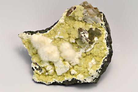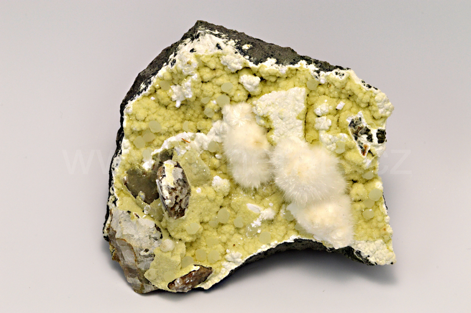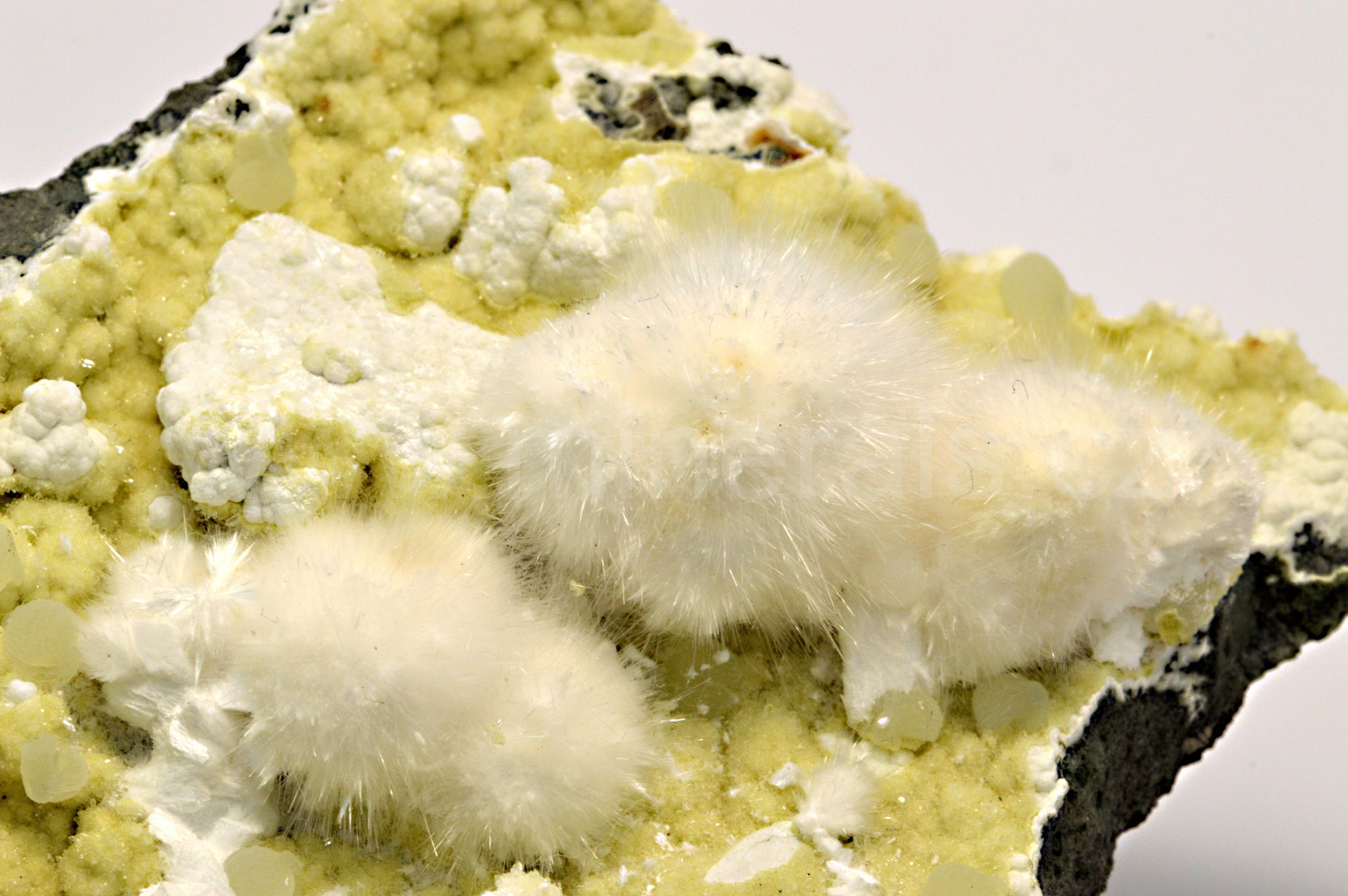 Okenit vytváří bezbarvé až mléčně bílé, hedvábně a perleťově lesklé, průsvitné, jehličkovité a vlasovité krystaly srůstající do kulovitých agregátů o velikosti až 22 mm, které se navzájem prorůstají. Okenit doprovází drobné, kulovité agregáty nazelenalého prehnitu a bílého gyrolitu. POZOR! Okenit se nesmí umývat pod vodou, protože by "zplihnul". Nemusíte se obávat, vzorek okenitu dokážeme odeslat v naprosto neporušeném stavu......
