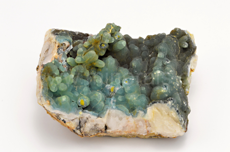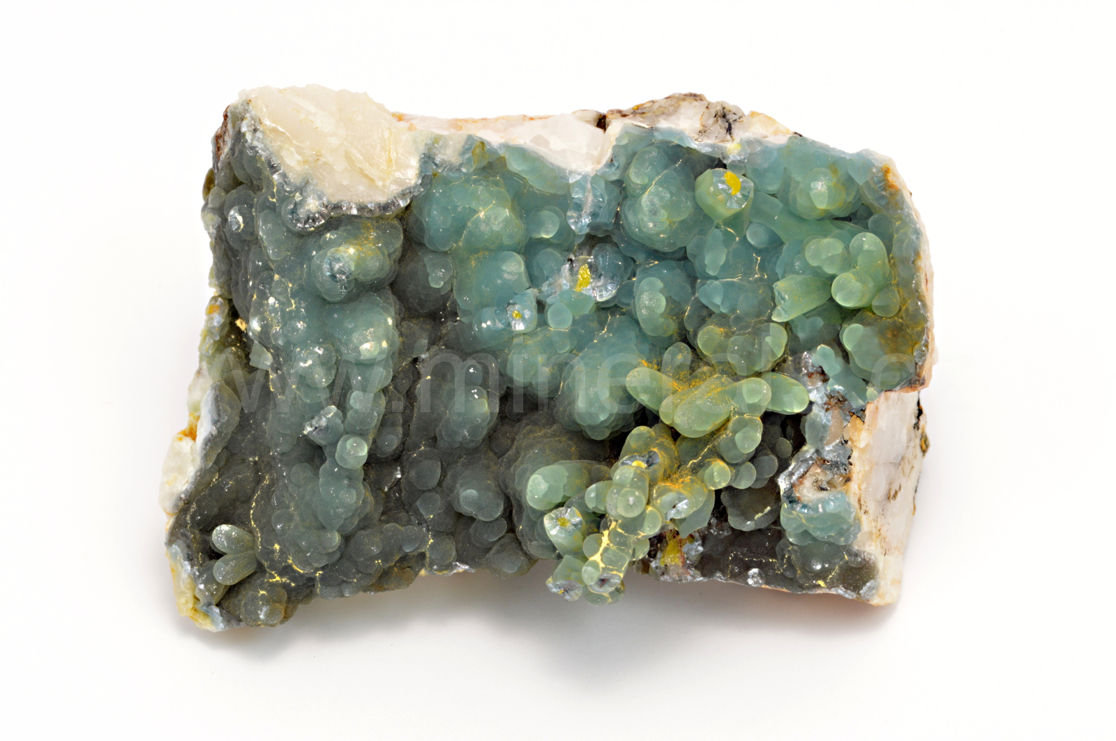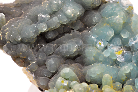 Plumbogummit vytváří světle a tmavě modré se zeleným nádechem, skelně až hedvábně lesklé, částečně průsvitné ledvinité agregáty a kůry, které pokrývají mléčně bílé krystaly křemene. Pěkný malý vzorek.