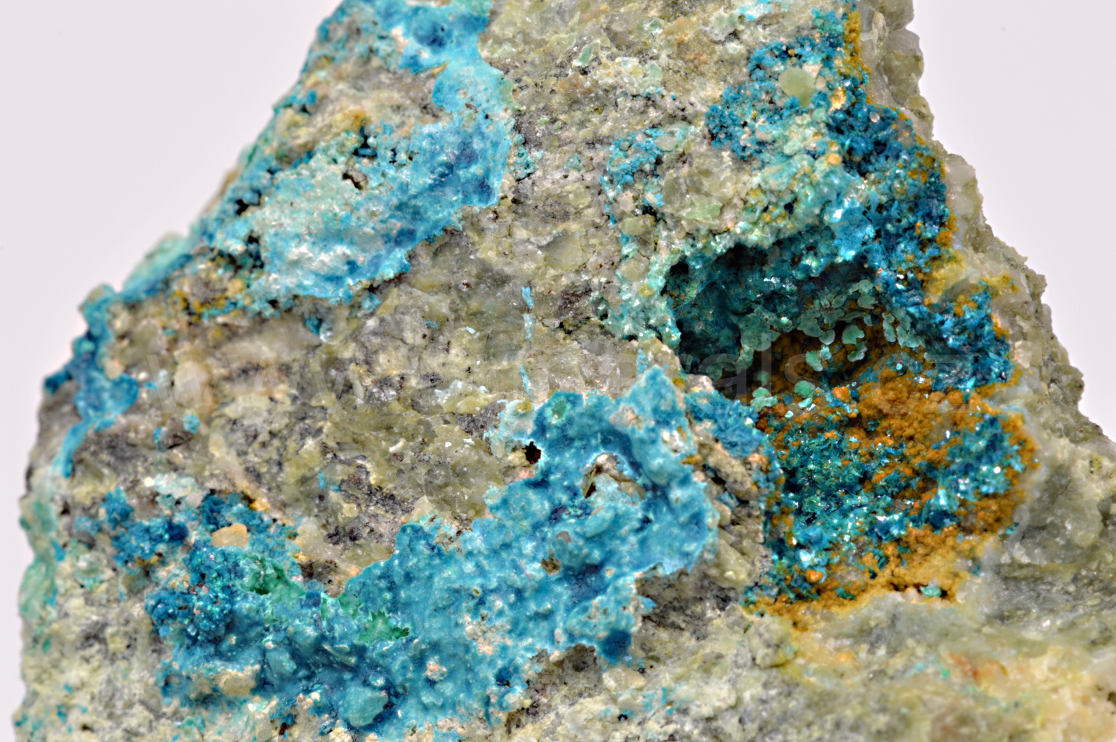 Posnjakit vytváří světle nebesky modré, matně až hedvábně lesklé, průsvitné, lístkovité a ploché krystaly dosahující velikosti až 1,5 mm, které se navzájem prorůstají a vyplňují nevelkou dutinu. Mezi krystaly posnjakitu zarůstají tmavě modré, skelně lesklé, průsvitné, kubické a pseudokubické krystaly langitu a zelené, kuličkovité agregáty malachitu.