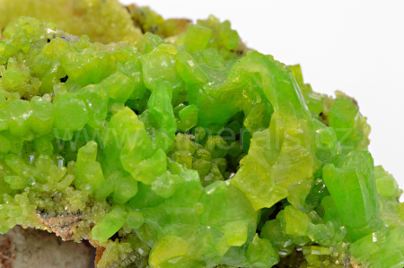 Pyromorfit vytváří nahnědlé, sytě zelené, skelně lesklé, částečně průsvitné, protažené soudkovité krystaly dosahující délky až 10 mm, které se navzájem prorůstají.