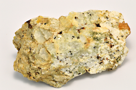 Sanbornit vytváří bezbarvé až mléčně bílé se zeleným nádechem, perleťově až skelně lesklé, průsvitné, lístkovité a tabulkovité agregáty prorůstají celým vzorkem. Velmi kvalitní oboustranný vzorek.