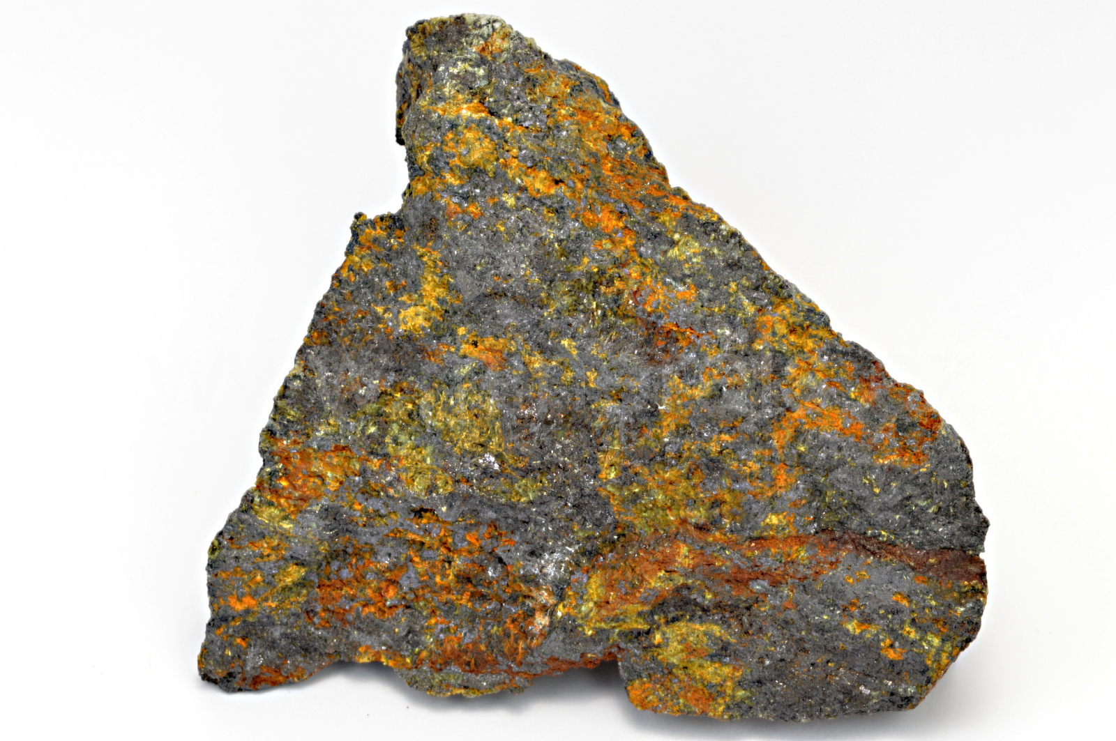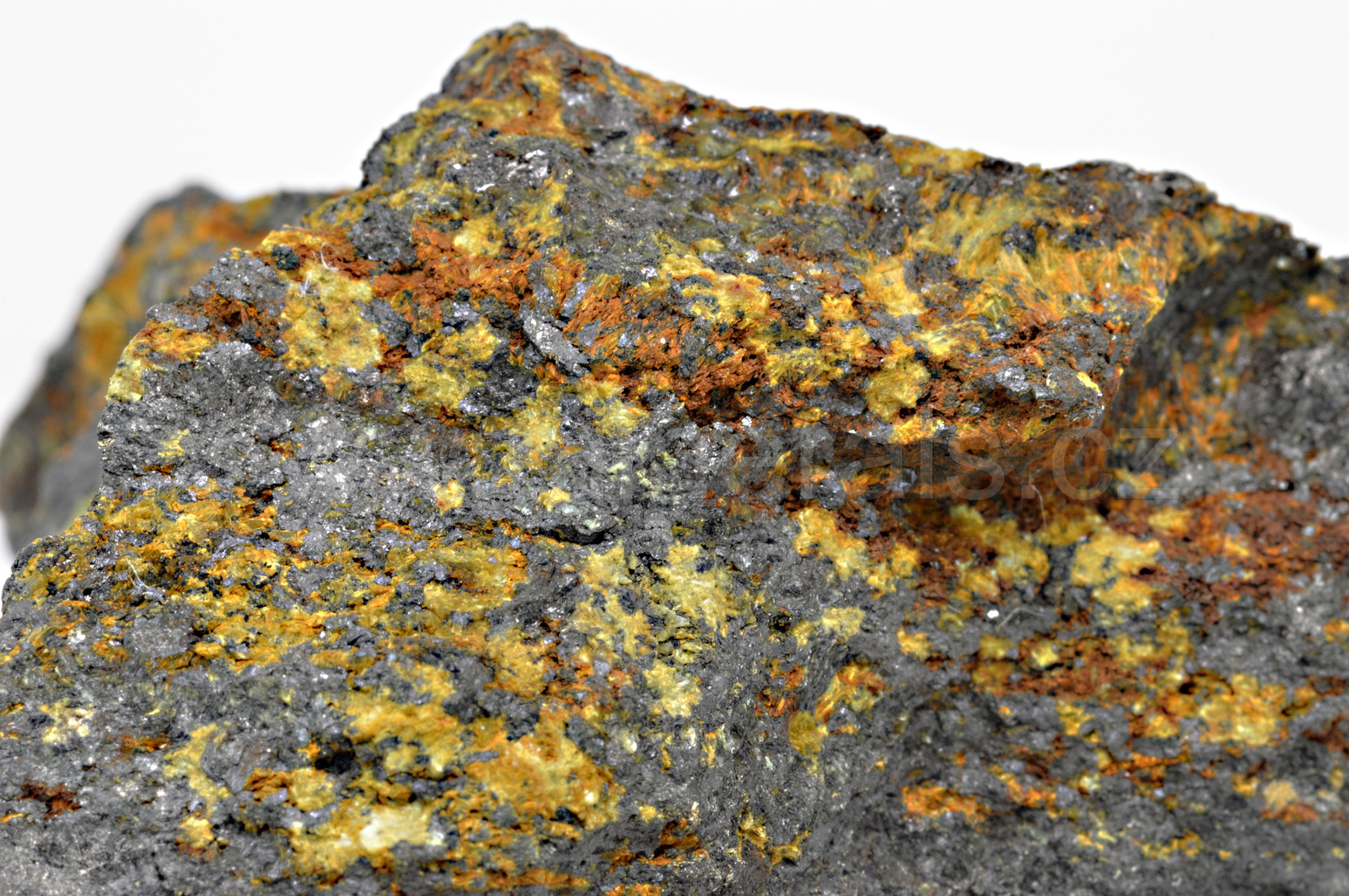 Schoenfliesit vytváří temně žluté, žlutooranžové, oranžovozelené, krémové, mastně lesklé, částečně průsvitné, nedokonalé krystaly a zrna dosahující velikosti až 4 mm, která zarůstají do šedočerného masivního hulsitu a hrubě zrnitého, temně hnědého sfaleritu. Schoenfliesit prorůstá celým vzorkem. Vzácný minerál.