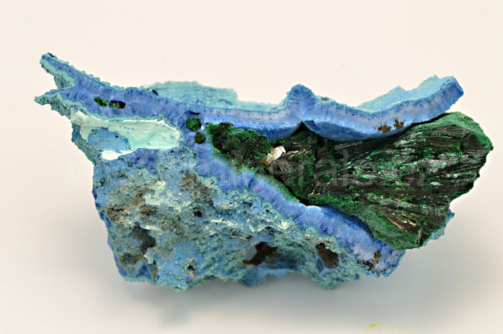 Shattuckit vytváří nebesky modré a tmavě modré, hedvábně lesklé, částečně průsvitné, ledvinité a radiálně paprsčité agregáty složené z jehlicovitých krystalů dosahující délky až 3 mm, které se navzájem prorůstají a mezi které zarůstá srostlice tmavě zelených, lesklých krystalů malachitu. Velmi pěkná kombinace.
