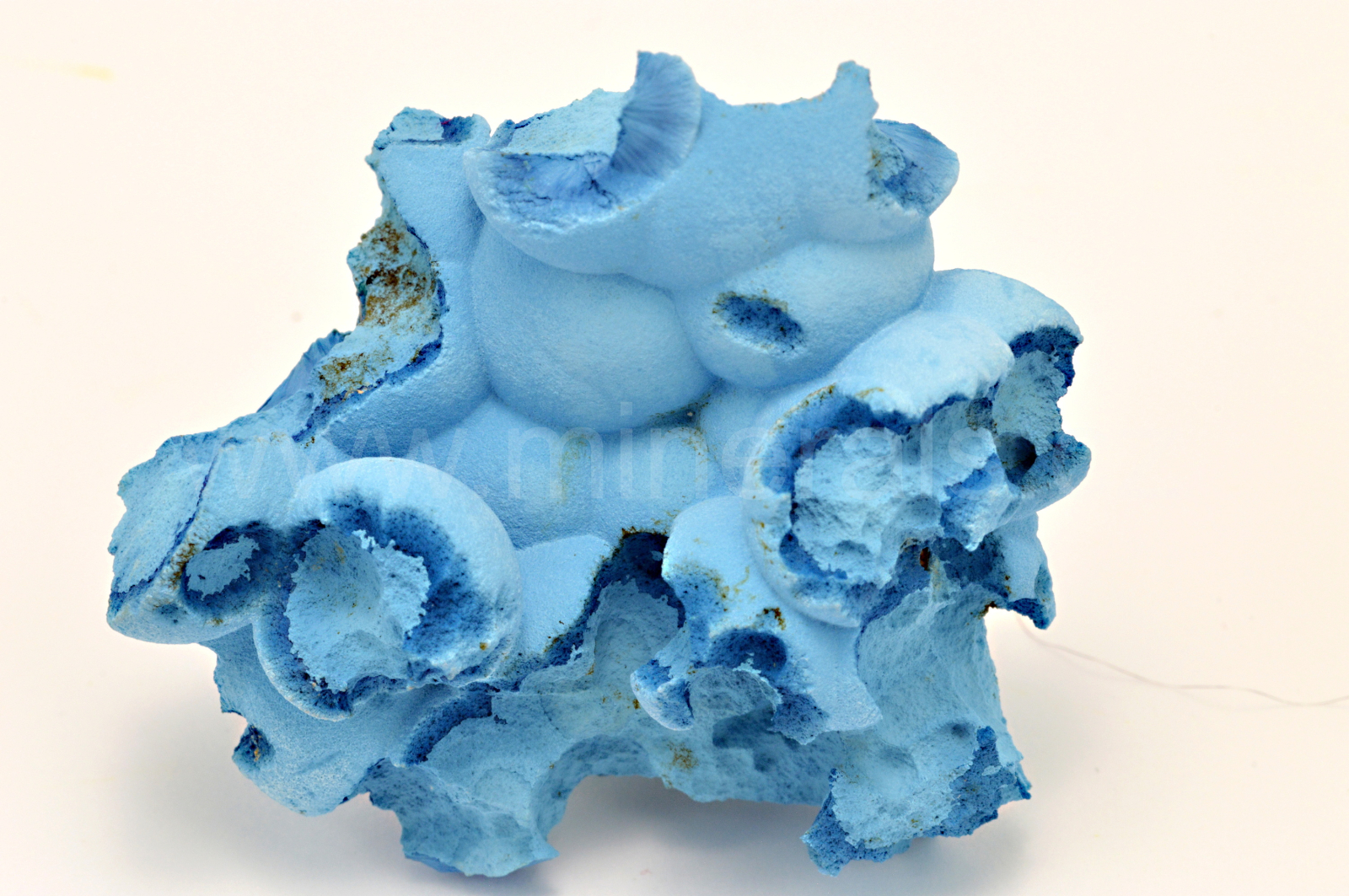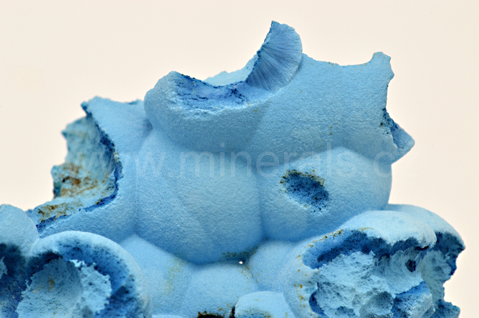 Shattuckit vytváří nebesky modré na čerstvém lomu tmavě modré, hedvábně lesklé, částečně průsvitné, ledvinité a radiálně paprsčité agregáty ve velikosti až 1 cm, které se navzájem prorůstají a tvoří skoro celý vzorek. Velmi pěkný malý vzorek.