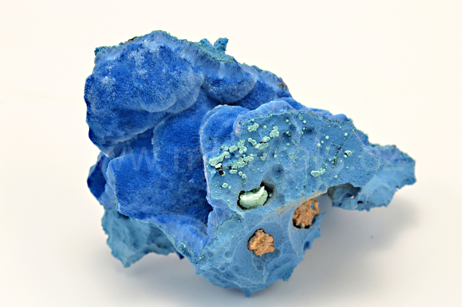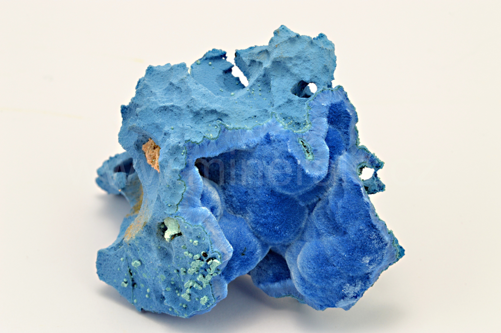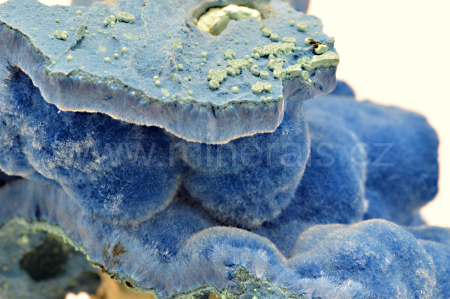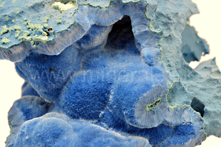 Shattuckit vytváří nebesky modré a tmavě modré, hedvábně lesklé, částečně průsvitné, ledvinité a radiálně paprsčité agregáty složené z jehlicovitých krystalů dosahující délky až 3 mm, které se navzájem prorůstají a tvoří polokulovité agregáty a kůry. Velmi kvalitní vzorek. Doporučuji, nedotýkat se hedvábných částí.