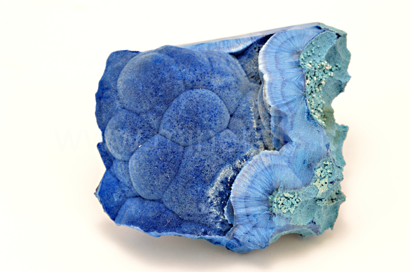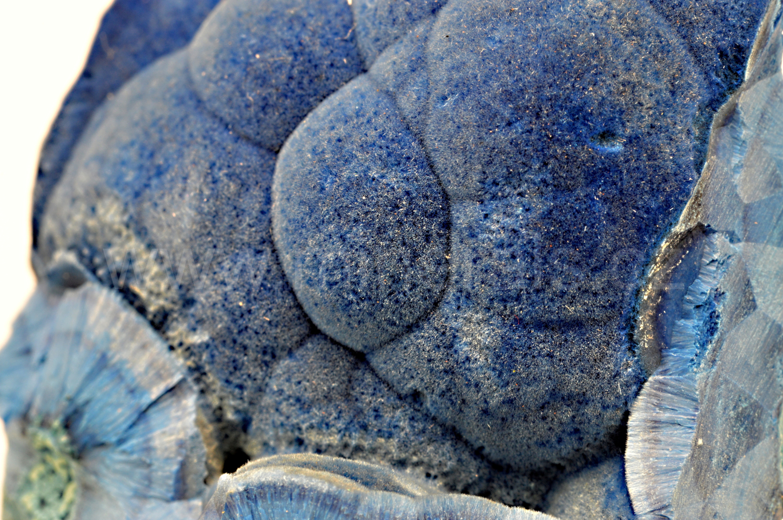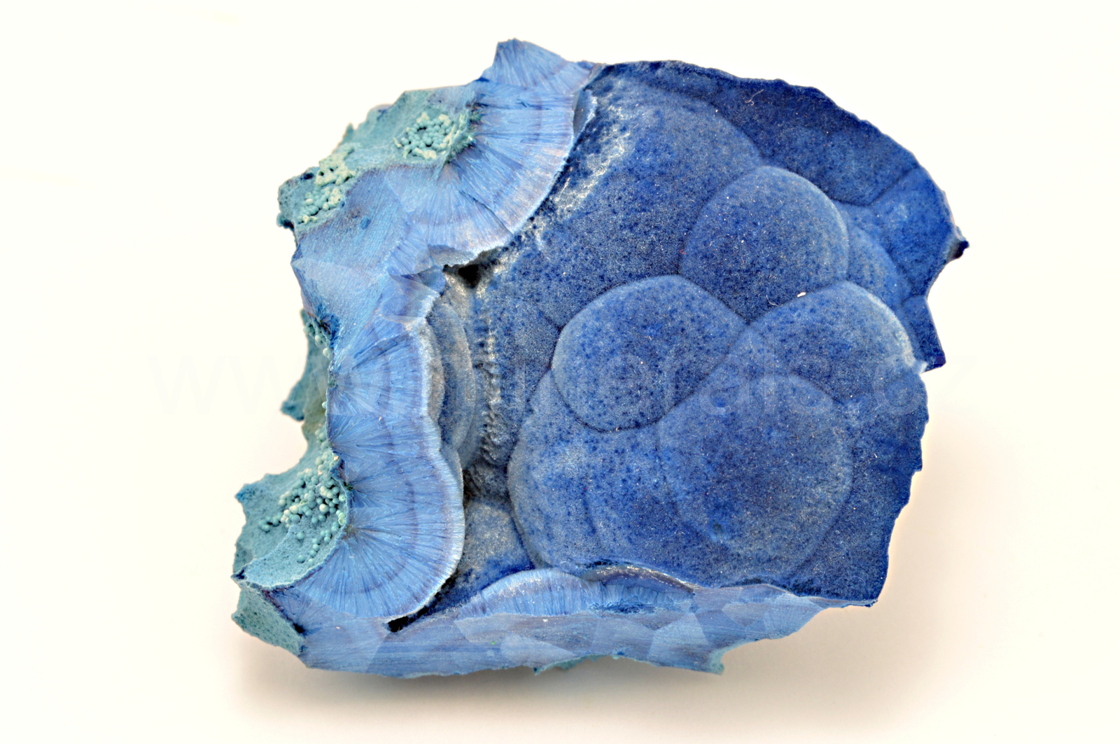 Shattuckit vytváří nebesky modré a tmavě modré, hedvábně lesklé, částečně průsvitné, ledvinité a radiálně paprsčité agregáty složené z jehlicovitých krystalů dosahující délky až 5 mm, které se navzájem prorůstají a tvoří polokulovité agregáty a kůry. Velmi kvalitní vzorek. Doporučuji, nedotýkat se hedvábných částí.