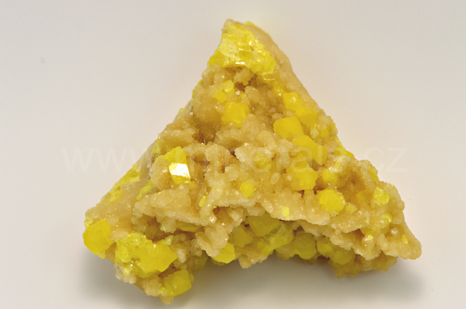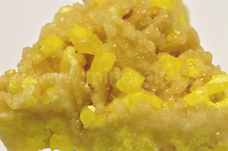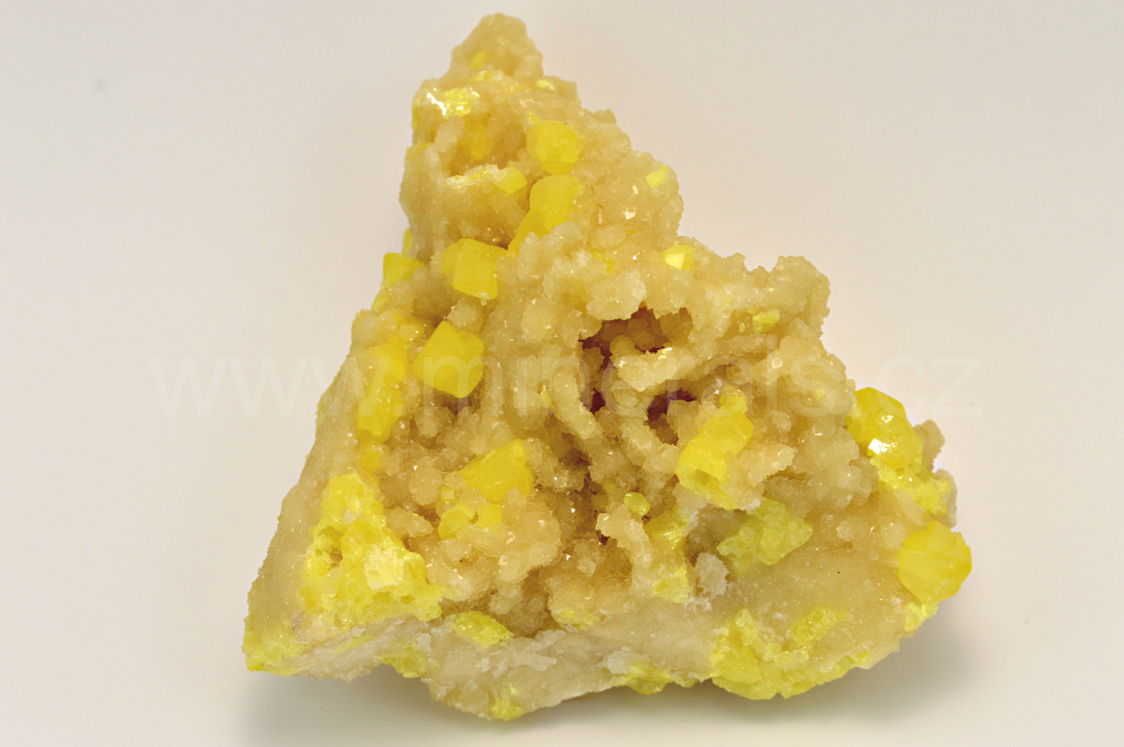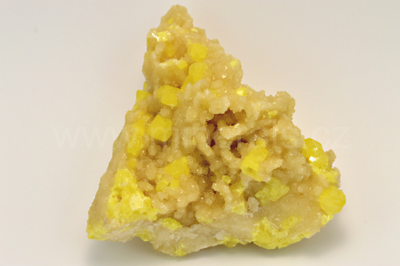 Síra vytváří sytě žluté, skelně až diamantově lesklé, průsvitné, pěkně ohraničené krystaly dosahující velikosti až 13 mm, které se navzájem prorůstají. Oboustranný vzorek. Vzorky síry z této lokality mají výhodu, že "nečpí" jako ostatní vzorky.