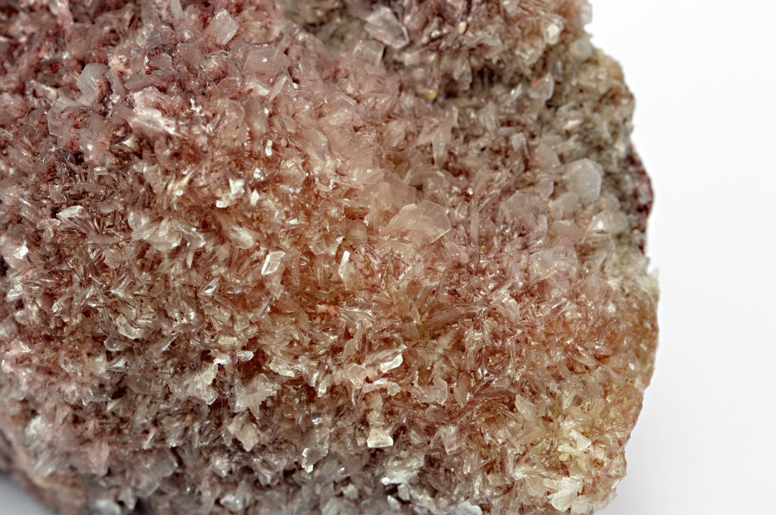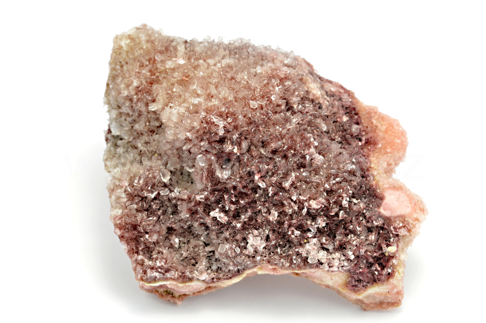 Trona vytváří bezbarvé, krémové, růžovofialové (zbarvení Mn) matně až mastně lesklé, průsvitné, ploché krystaly dosahující velikosti až 5 mm, které srůstají do snopkovitých agregátů tvořící skoro celý vzorek. POZOR! Minerál je rozpustný ve vodě.